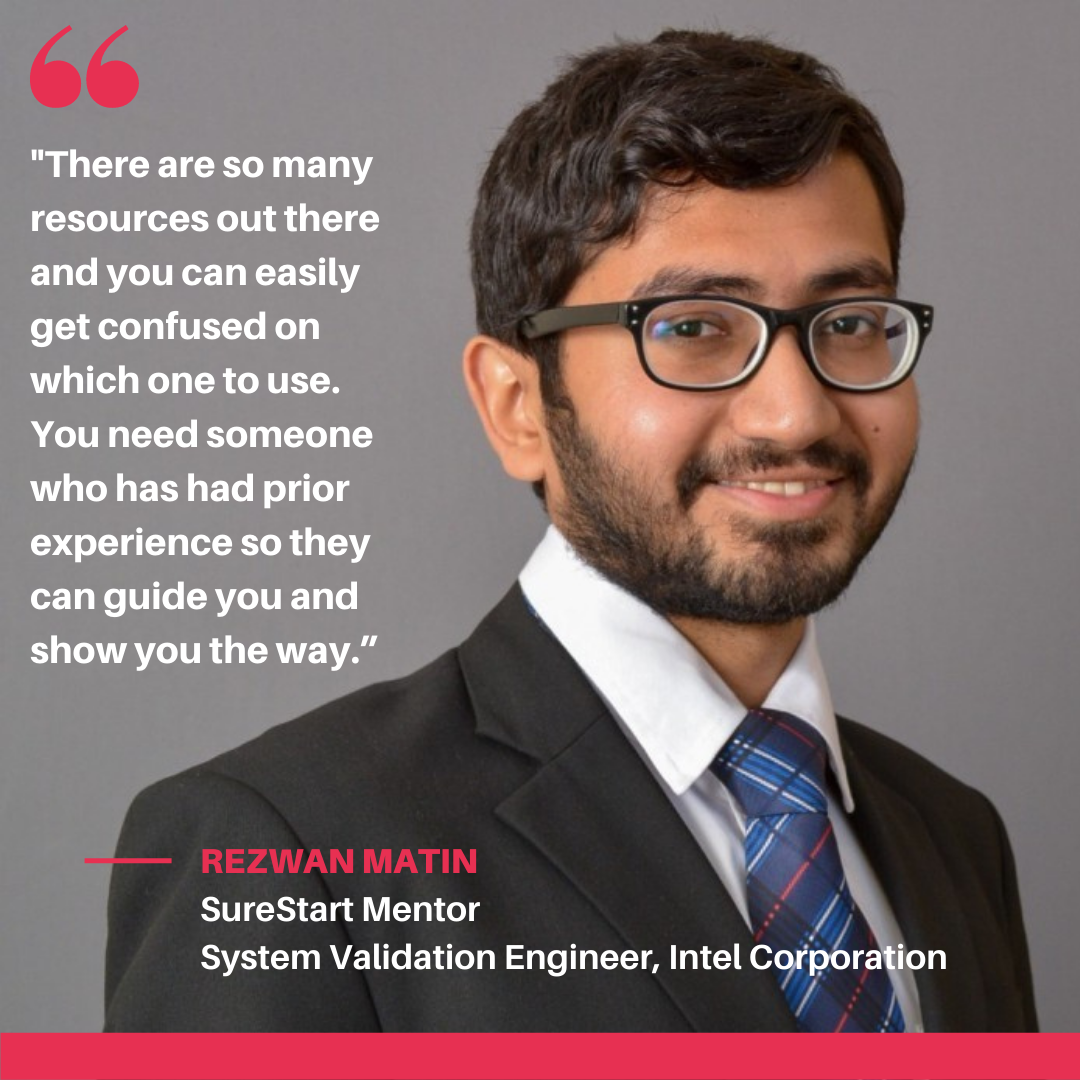 One of the core pillars of the SureStart program is mentorship, something that Rezwan says is extremely important when starting out on any new journey. "In any field that I pursued, I've always had someone show me the way. It's really important when you're starting off. It gives you a sense of direction.”